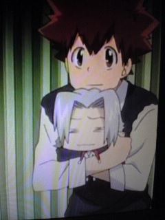 武の足にくっついている小さい物体は・・・。 ちび獄です(笑)。 一瞬にして 武にボールを渡す。 つか、何でボール持ってんのよ。 やっぱ 愛 でしょうか。 肩乗りちび獄。 私の肩にものってーーーーーーー! かわいすぎるぅううう! 獄寺くんに痛い思いさせたやつに怒るだんなさん。 ほんっとに怒ってんのな! ツナァあああああ!!!!!! はぁはぁはぁはぁ・・・・くっうらやましすぎるぜ!!!!!!!! ううううう!抱きしめたい・・・・!! はひ! だんなさんが怒ったですーーー!! いやすごい怒りよう。 やっぱ愛妻家なんだな。 だな! こんな姿でどうやって十代目をお守りすれば。。。と 落ち込むちび獄・・・ぷっ、かっかわいい・・・!! しょぼくれてるようおう。 おっ戻りました。 感動のきらきらお目目の獄寺君。 表情豊かでかわいいです。 もお、さらわれちゃうぞ! リボーンといいかんじ(笑)? 石化するツナ。 いやぁー今日もご馳走さまでしたぁ!!!!