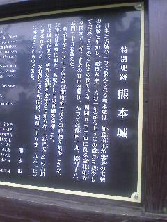 お墓参りというののついでにやってきました熊本城! いいっすねぇ。やっぱ城ってのは! アドレナリンが出まくりますよ! 左近と殿の幻が見えました。 緑もいっぱいで、普通にきれいじゃろ!て感じでした! 満足満足。 はぁーほんとに佐和山にいきてぇなぁ…。 ちなみに熊本城は 大阪城・名古屋城とならぶ日本3名城と呼ばれる。 黒田清正によってたてられ、篭城のときのために 銀杏(銀杏の木)を沢山植えたために銀杏城とも呼ばれています。 2007年は築城400周年だって! すごいねぇ。 黒田清正のあとは細川氏が熊本城に入りました。 あの総理大臣にもなった細川護熙さんのご先祖様です。 細川氏の家紋て、離れ九曜紋(であってるか?)て なんでかBASARAの小十郎がつけてんだ。 片倉家も九曜紋なんだねぇ…?? おっ、ちょっと調べたら、奥州細川家っていう分家があるな…。 もしかして、片倉家もかんけーあるってこと?? むぅ、素人にはわかんねぇぜ。 はー佐和山に行きたい。 でも。。。行ったら鼻血でるだろなぁ…。 妄想で。