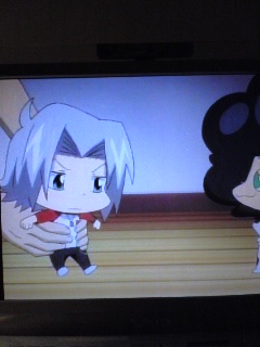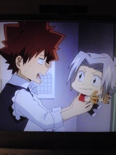 武器を改造してくれると聞いて、目をらんらんと輝かせながら 現れる獄寺君。 なんてかわいいの君は。 毎週恒例になってきた(笑)私のための獄寺君ショット集。 今週もすごかったです。 かわいくて、もう・・・! いじめたくなっちゃうよ! あっ 殺気・・・。 十年バズーカでちびちゃんに(笑)! むちゃかわいいよ! こんな子供ほしいよ!!(真剣) 自分がちびちゃんになったことに気付かずに、じゃっと 帰ろうとするちび獄。 歩く音もかわゆいのです。きゅっきゅっ♪ だめでしょーと持ち上げられ、 「十代目って力持ち・・・!」 と尊敬のまなざしのちび獄。 バカ・・・。でもかわいい・・・! みんなにかわいー!といわれて、まさか十年バズーカなんか あるっていえないツナが、獄寺君なわけないじゃん!とかなんとか 言ってます。 なんだこらぁ?とガンたれるちび獄。 なんてかわいい手足。 暴れるので、ぎゅーっと抱っこ。 いいなぁーツナ。 だんなさん編につづく!