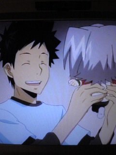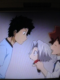 なんか、うれしそうに話す山本武。 実は、ビアンキに会ってぶっ倒れたことを言いたくなかった獄寺君の ために、一緒にうそをついてあげてたんだね、山本武は。 実はうちで看病してたんだー だってさ。 はーなんだこの で き あ が って る 感 は !! すごかね、リボーンて。 すごいっす。 もう一回みよ(笑)。